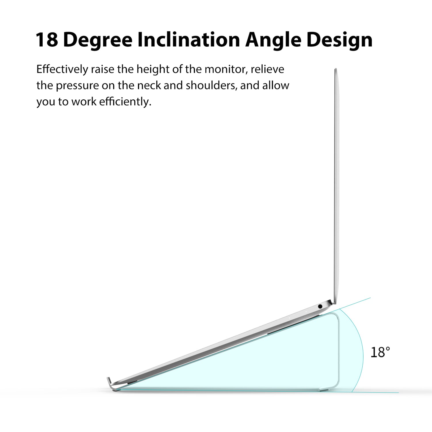 The shape of BEWISER LS-1 is machined into an angled “J-like” to prop up your laptop or iPad to an 18-degree angle. Eighteen degrees is a very specific angle. Any lower and the BEWISER LS-1 wouldn’t prop up your laptop screen to a proper ergonomic height. Any higher and the typing angle would be uncomfortable. LS-1 relieves the pressure on your neck and shoulder from lowering your head. The same goes for typing at this angle. The 18-degree angle makes it comfortable to type directly on the laptop keyboard without causing wrist fatigue.