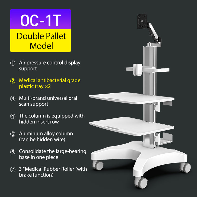 OC-1TS Dental Laboratory Equipment-Silent Wheel, Dental Scanning, Medical Moving Host/Monitor Equipment-Removable Display Case, Bracket