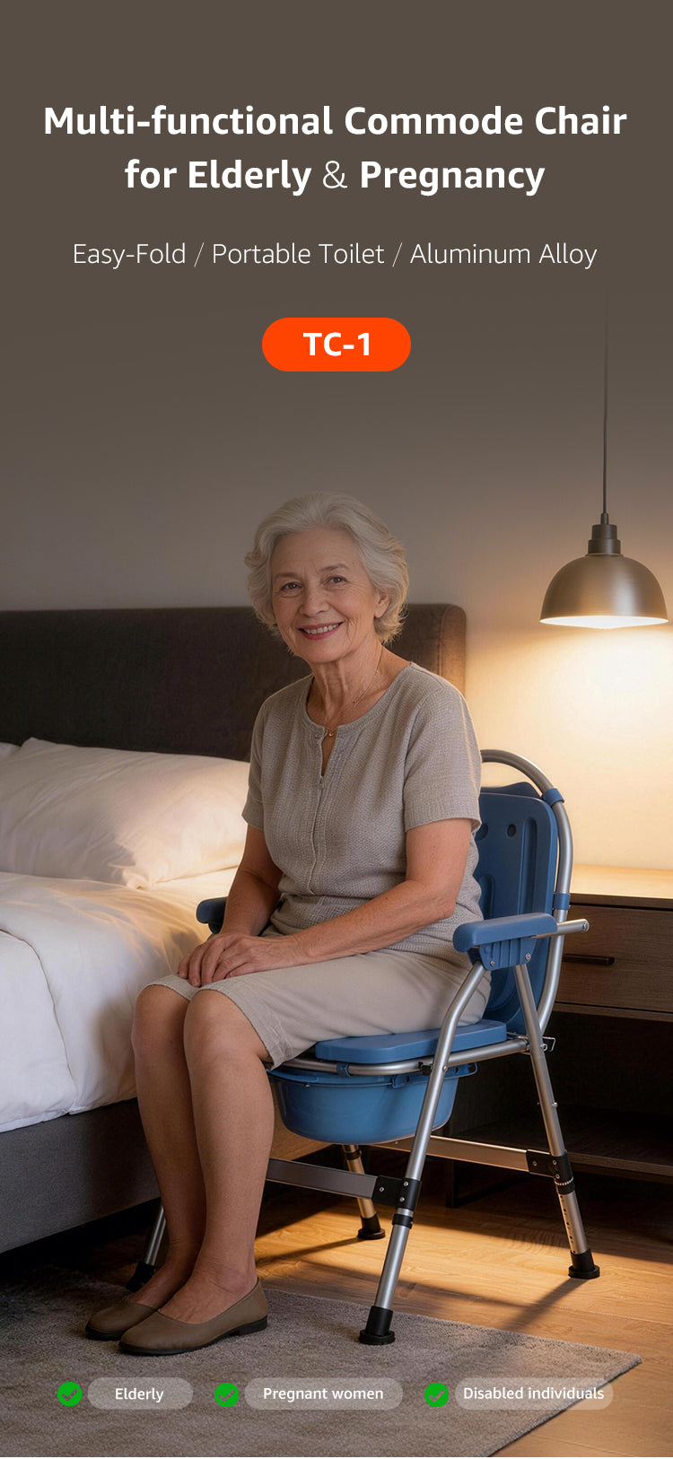 Foldable Commode Chair Bathroom Safety Equipment Direct Factory Sales for Elderly Care Products (BEWISER TC-1)