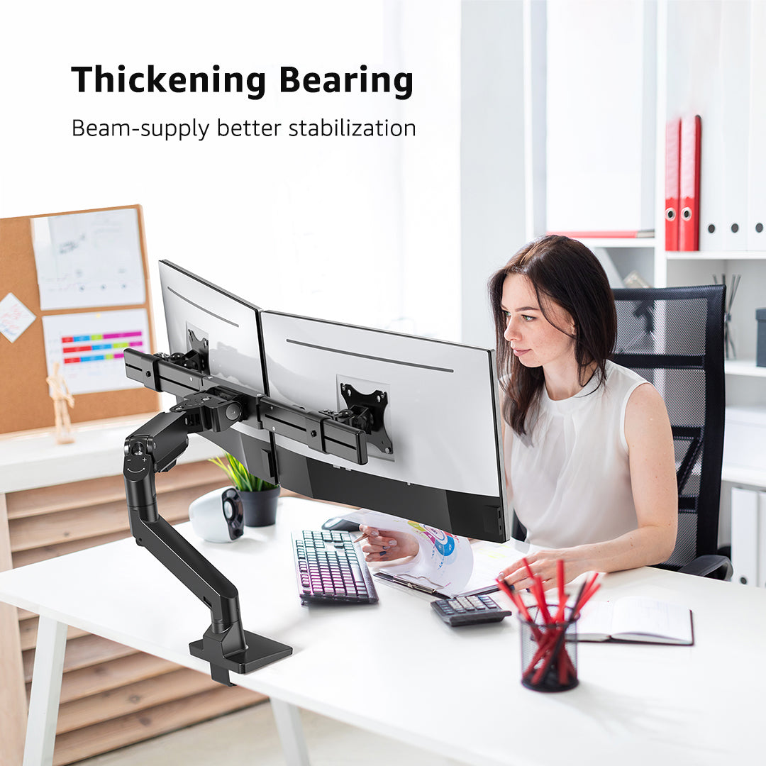 - BEWISER Dual Monitor Arm:Heavy duty double monitor mount is made of high-quality aluminum,fit most screens (even gaming monitors) up to 32 inches each and 26.5 lbs ( the total weight of two screens)