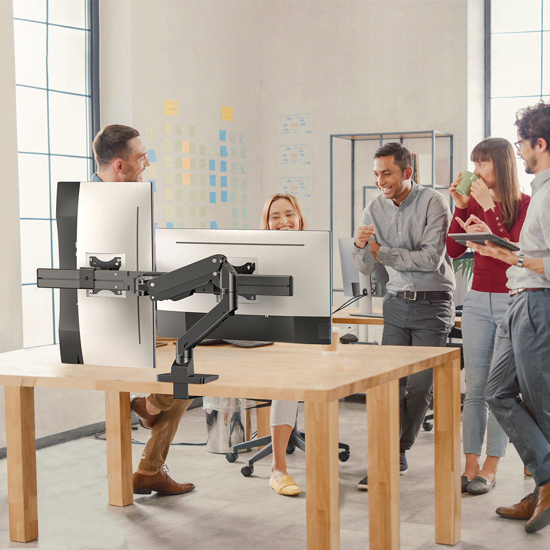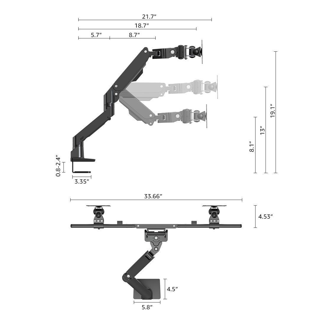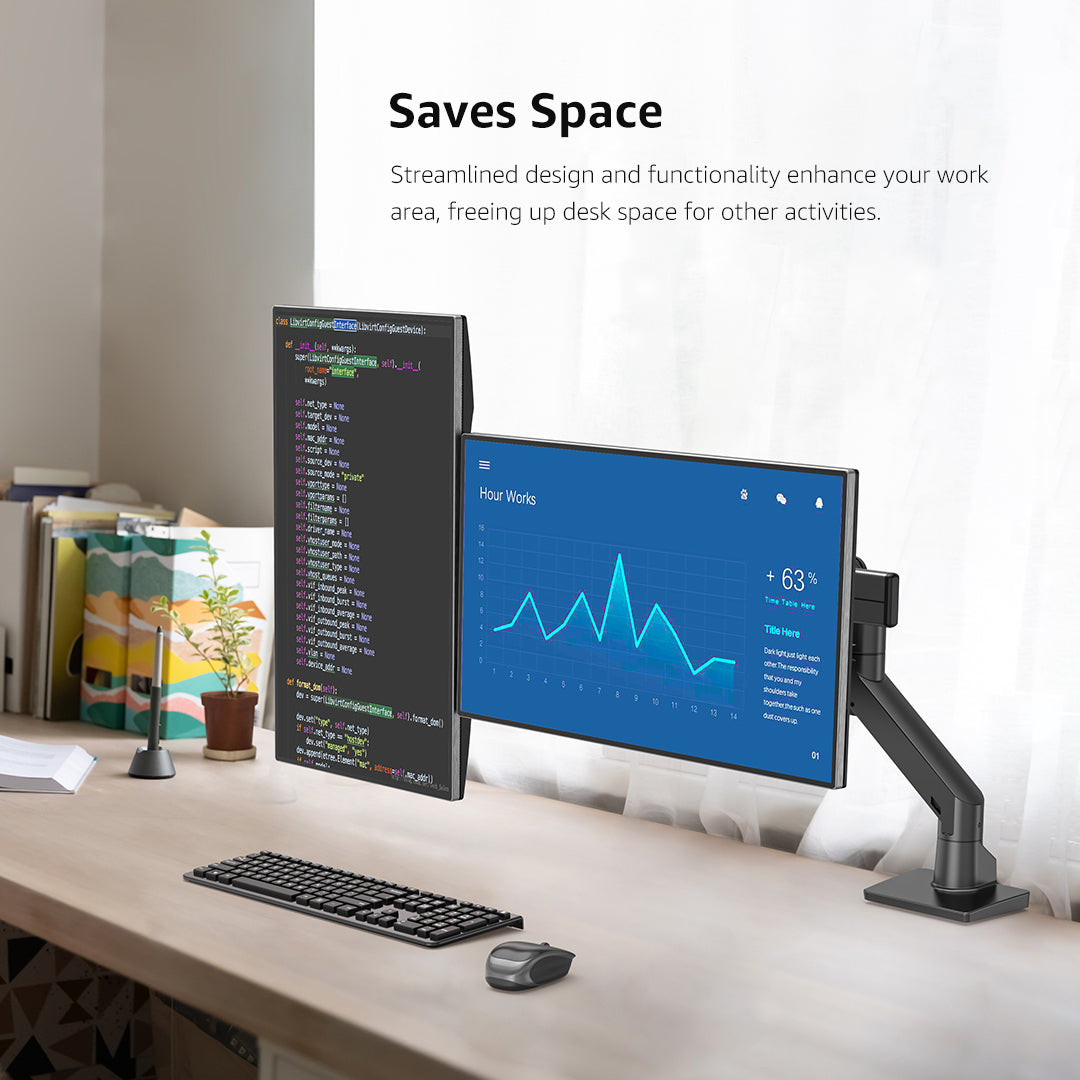 - Monitor Arm Highlight Design:In the VESA head, we add two powerful mechanical springs,allows you to position 2 monitors side by side, creating a seamless viewing experience and expanding your screen real estate.