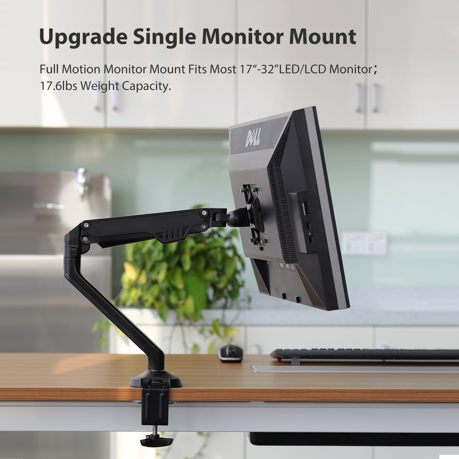 Single Monitor Arm Mount Stand Fully Adjustable Gas Spring Desk Mount Swivel Bracket with C Clamp,Grommet For 32 Inch(D5)
