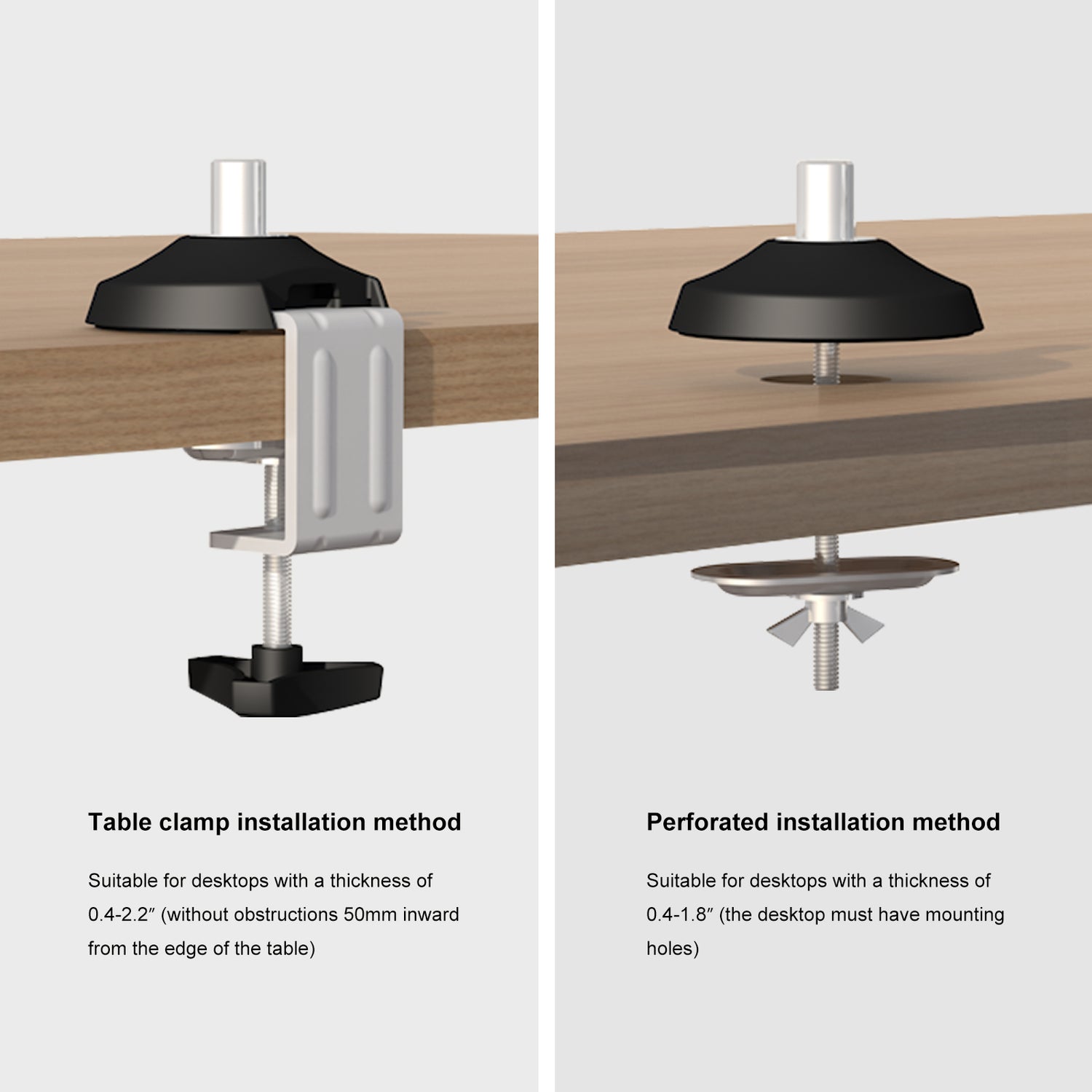 - 【Multiple Options】: The two-stage locking system is compatible with 2.2" C-clamp and 1.8" Grommet Base.Double efficiency and productivity by opening up desk space allowing you to work in a more comfortable and ergonomically correct position to reduce stress.
