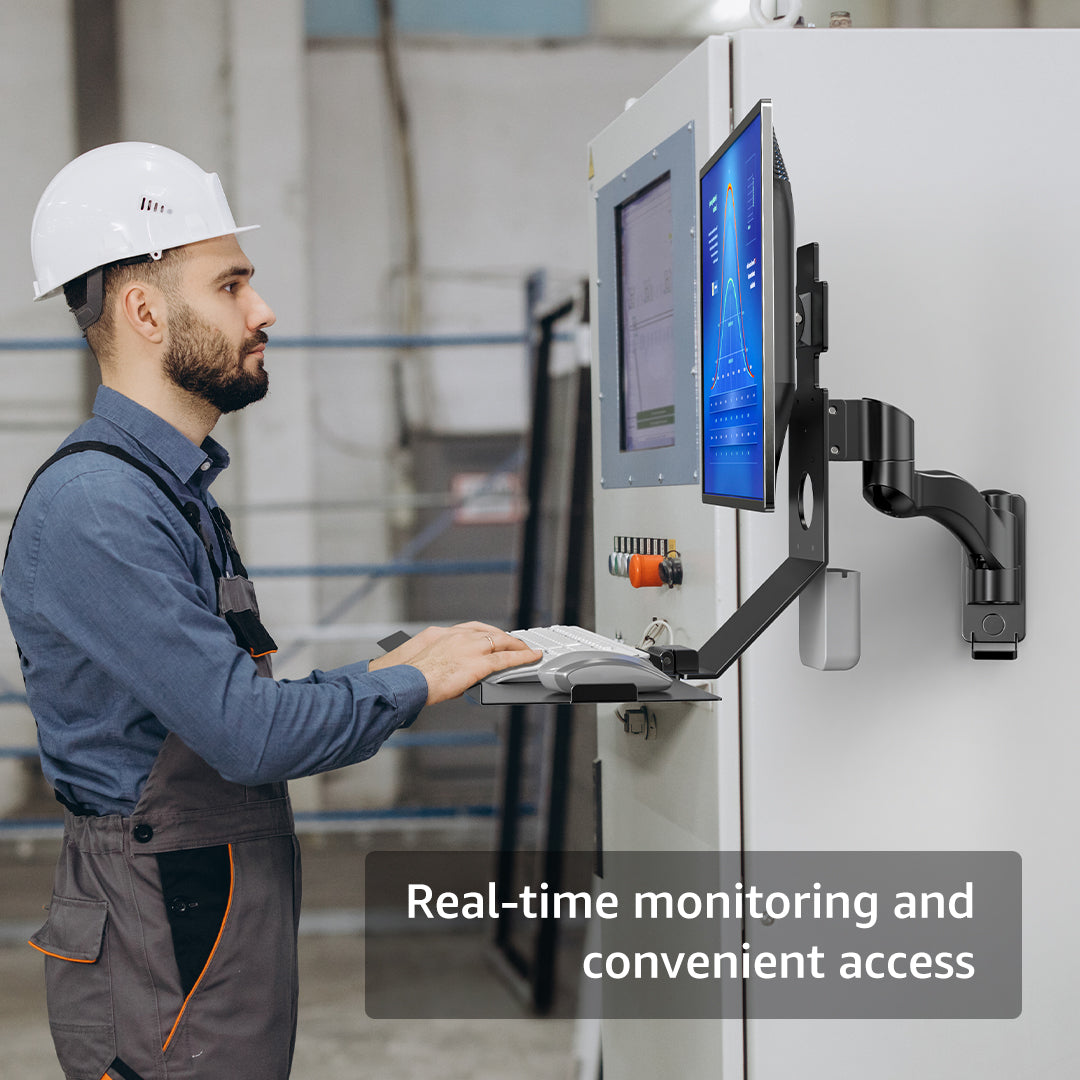 WKS-2 Bewiser Universal Wall-Mounted Adjustable Monitor Stand with Folding Keyboard Holder for Industrial Equipment and Machine Tools